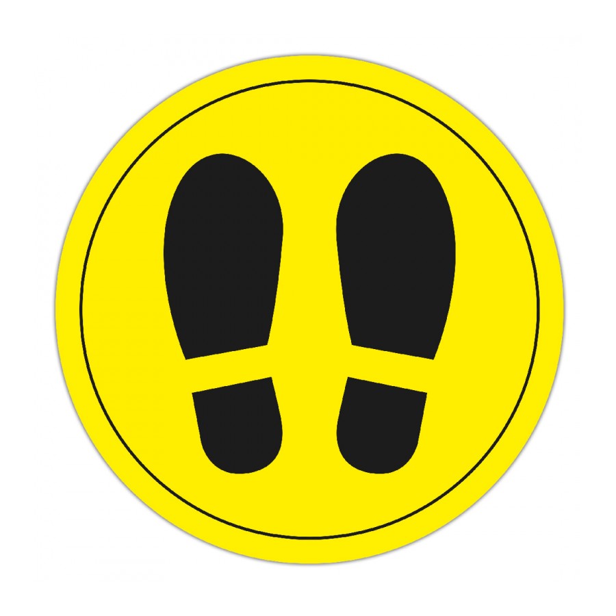 Vloermarkering zelfklevend cirkelschoenpatroon ø 30 cm, matte afwerking en zeer sterke oplosmiddellijm die geen residu achterlaat.