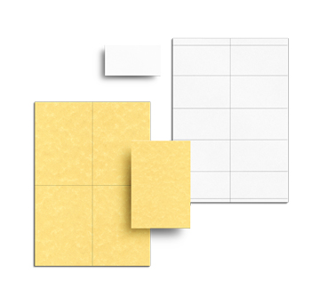 Naast papier en kaarten hebben we ook visitekaartjes in gelijke en afwijkende motieven of gewoon in het wit. Ook deze print u simpel zelf, met uw eigen printer.