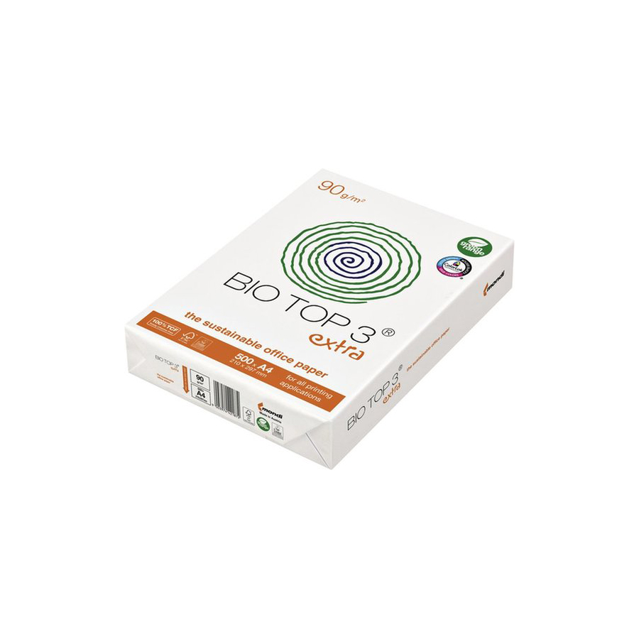 BioTop 3 Extra is een topkwaliteit kopieer- en laserprintpapier met een natuurlijke (off white) tint. Het papier bevat geen optische witmakers en is 100% chloorvrij gebleekt (TFC). Qua prestaties kan het zich meten met de beste papiersoorten. Geschikt voor alle kantoortoepassingen en printers.