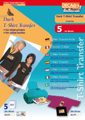 Maak uw eigen T-shirt met naam, logo of afbeelding. Eenvoudig te printen met uw inkjetprinter en daarna opstrijken met een strijkijzer. U dient de afbeelding op een normale manier af te drukken. Deze transfer is alleen geschikt voor zwart of donker gekleurd textiel.