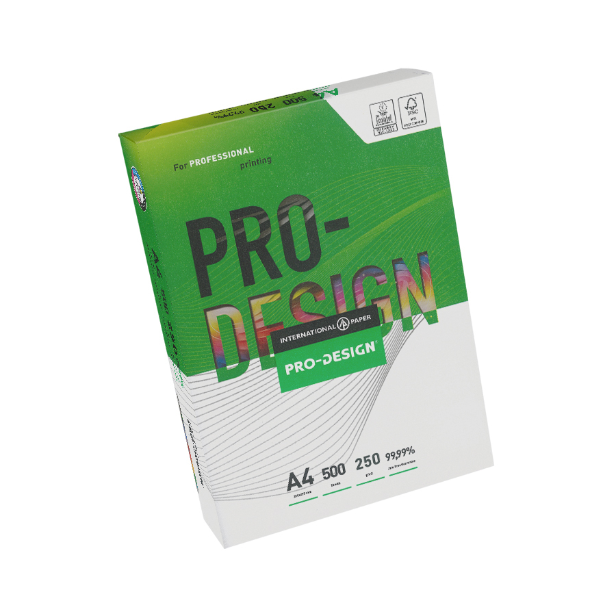 Pro Design® is een houtvrij, wit, ongestreken FSC gecertificeerd papier met een extra glad oppervlak, geschikt voor kleurenlaser- en inktjetprinters. De bijzondere eigenschappen zorgen voor uitstekende drukresultaten en perfecte kleurweergave. De hoge witheid zorgt voor een betere contrastwerking en het gladde oppervlak voor een optimaal resultaat en een onberispelijke tonertransfer. Het is gemaakt met de ColorLok-technologie wat een scherpe afdruk met diep zwart, een snellere droogtijd en sprankelende kleuren garandeert.