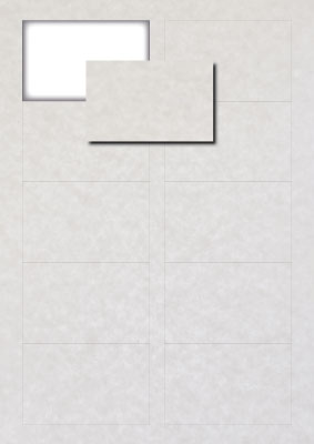 Visitekaarten van structuurpapier. U print uw visitekaartjes als A4 vel en na het printen scheidt u de kaarten door de microperforatie twee maal te vouwen.