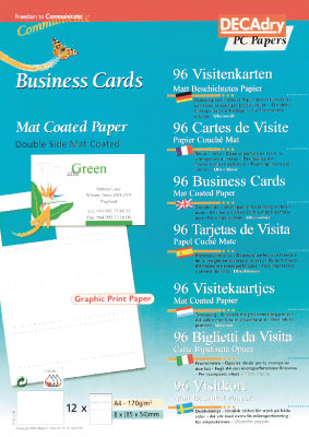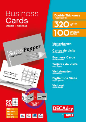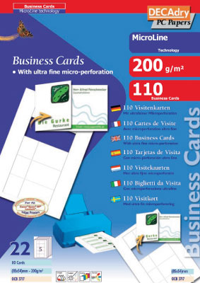 DCC-718Prijsklasse: $16,67 tot $32,19 incl. BTWVisitekaarten van extra dikke kwaliteit. In ??n handeling te printen aan beide zijden en door de zelfklevende lijmlaag aan de achterzijde in ??n enkele vouw tegen elkaar te vouwen. De…